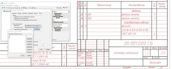 Для встроенной в чертёж спецификации реализован вывод данных в несколько столбцов. В настройках спецификации на вкладке таблицы заведена настройка Ограничение количества строк, которая позволяет задавать максимальное количество строк для каждого столбца с данными встроенной в чертёж спецификации.