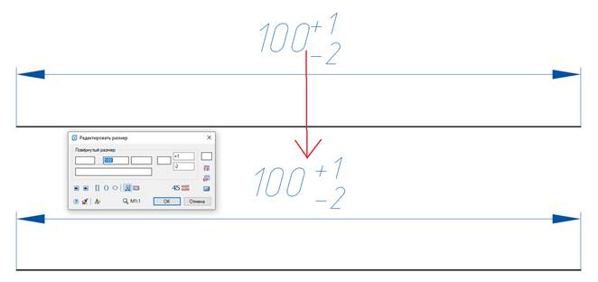 - способ отображения допуска включает номинал размера, верхнее и нижнее отклонения.