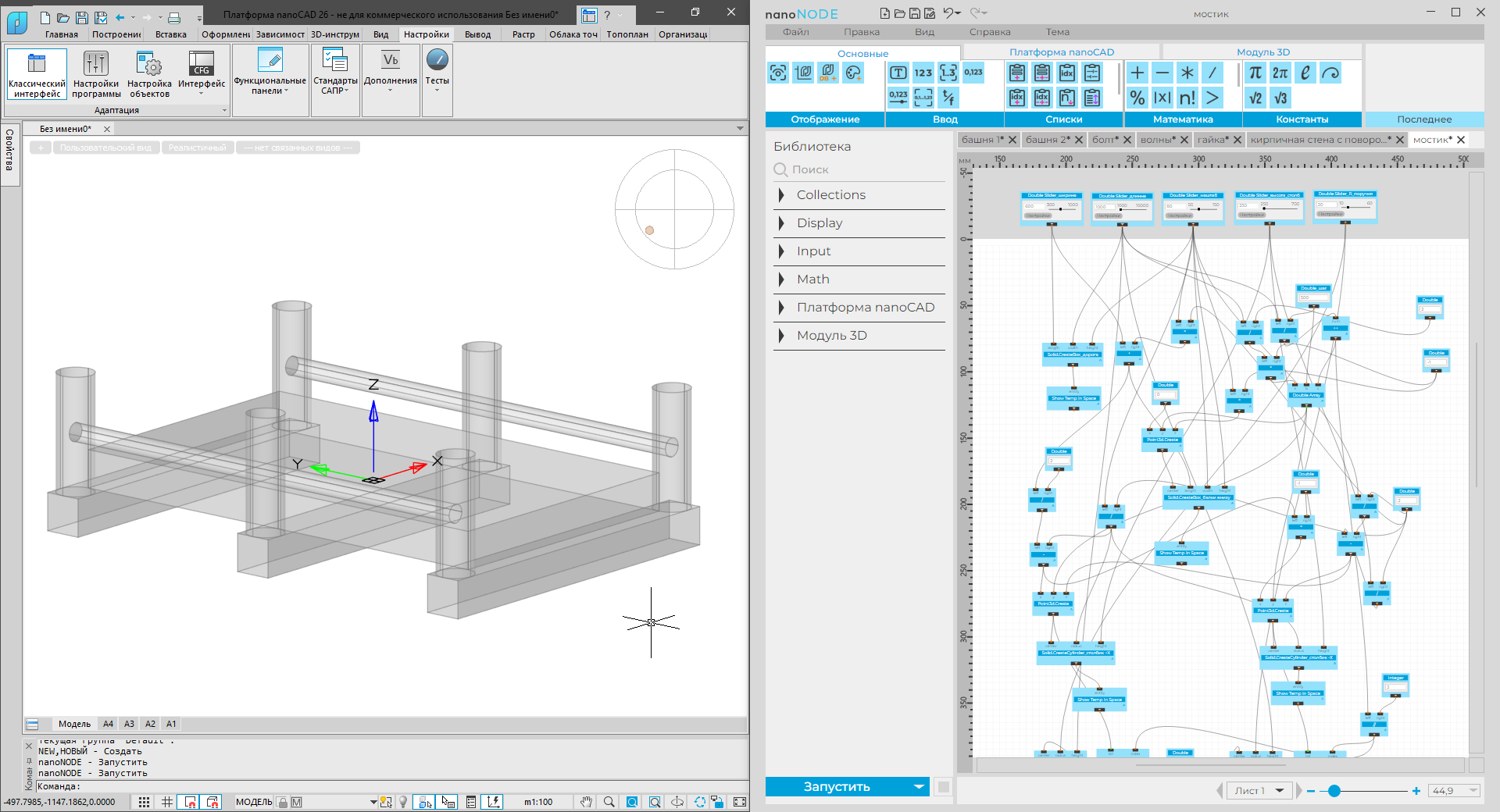 подготовили для вас примеры демонстрационных скриптов, с помощью которых вы можете начать изучение nanoNODE в самостоятельном режиме. Но еще обращаем ваше внимание, что для первого старта стоит ознакомиться с «Руководством пользователя», которое позволит разобраться в интерфейсе и научиться работать с компонентами nanoNODE: Лента → Справка → Документация (F1). Итак, скрипты: