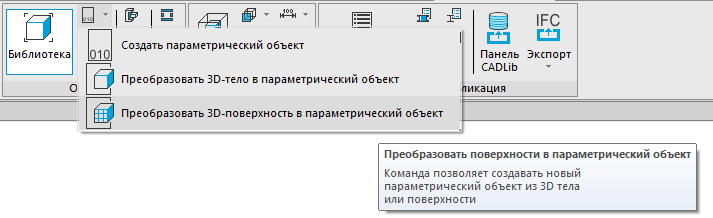 Для работы с импортированной графикой (например IFC), предварительно нужно преобразовать ее в параметрический объект с помощью команд PE_CONVERTTOSHELL (для сетей) и PE_CONVERTTOSHELL (для твердотельных объектов).