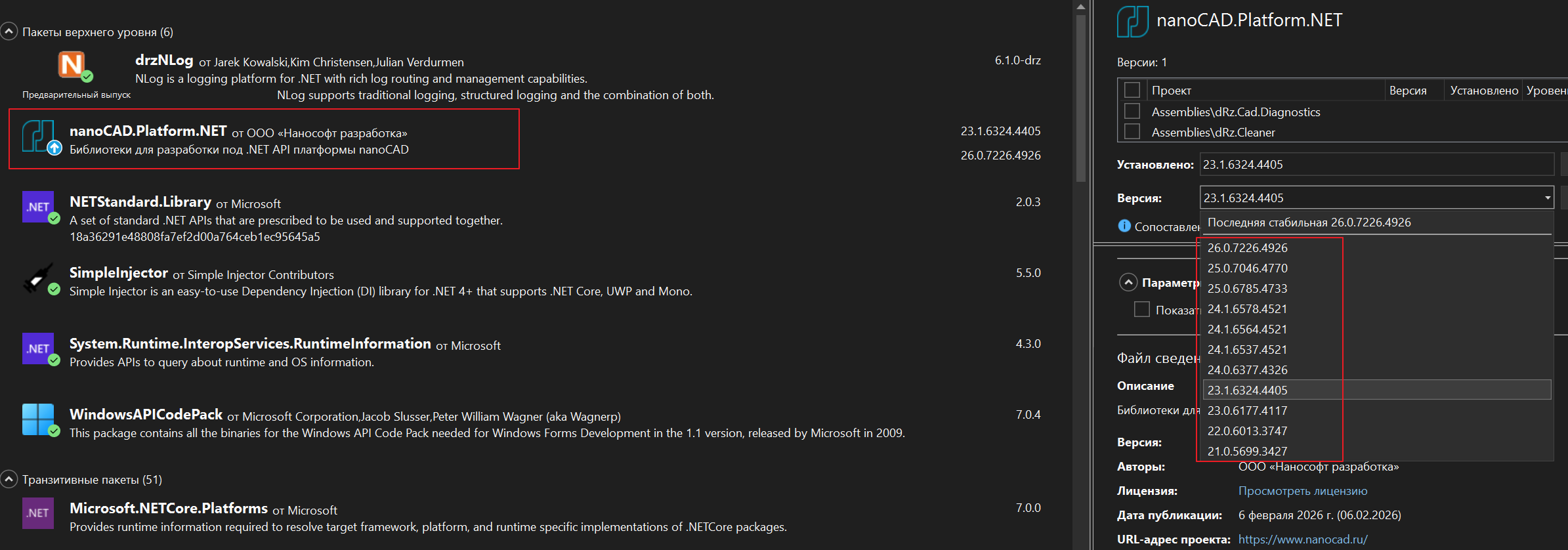 Подскажите какие библиотеки подключать Visual Studio 2022 .net C# для NC 26.0?
