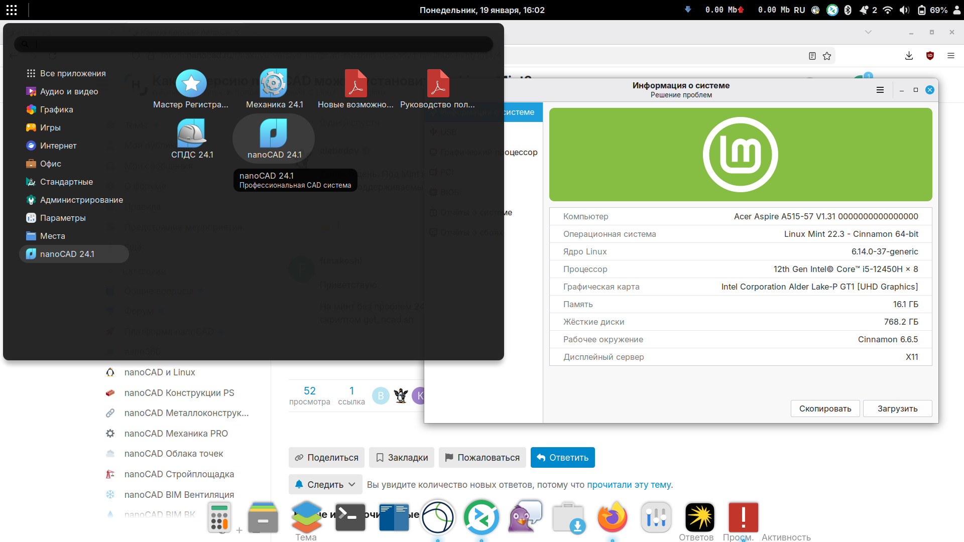 Добрый день. Под Mint не собирали и не планируем. Рекомендую выбрать ОС из списка поддерживаемых: Скачать продукт Платформа nanoCAD
