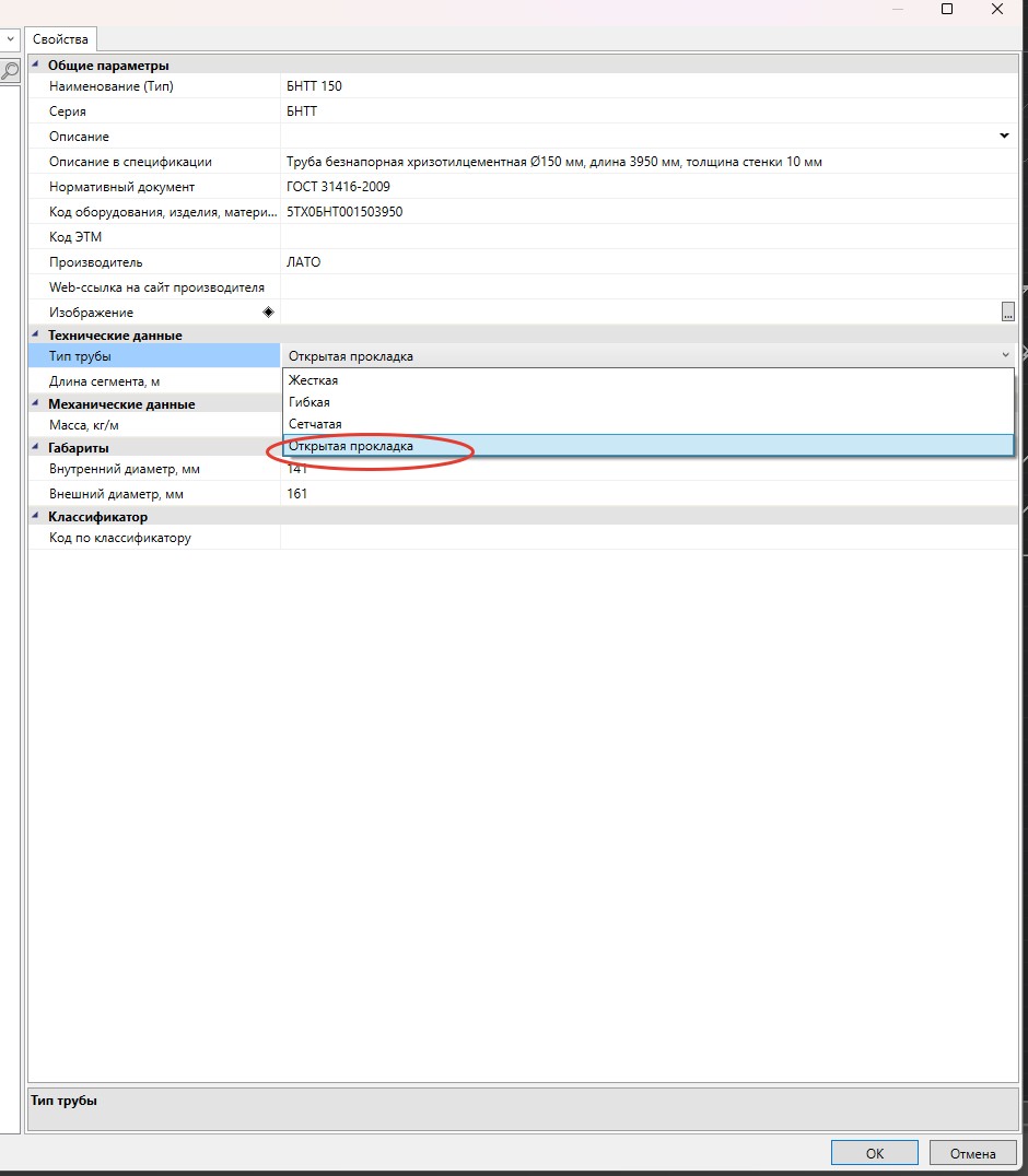 В КНС при выборе типа трубы можно выбрать трубу со свойством открытая прокладка.