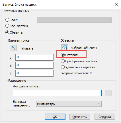Фрагмент ниже формирует набор и “выплевывает” его в файл, используя при этом текущую систему координат . Объекты остаются на месте.