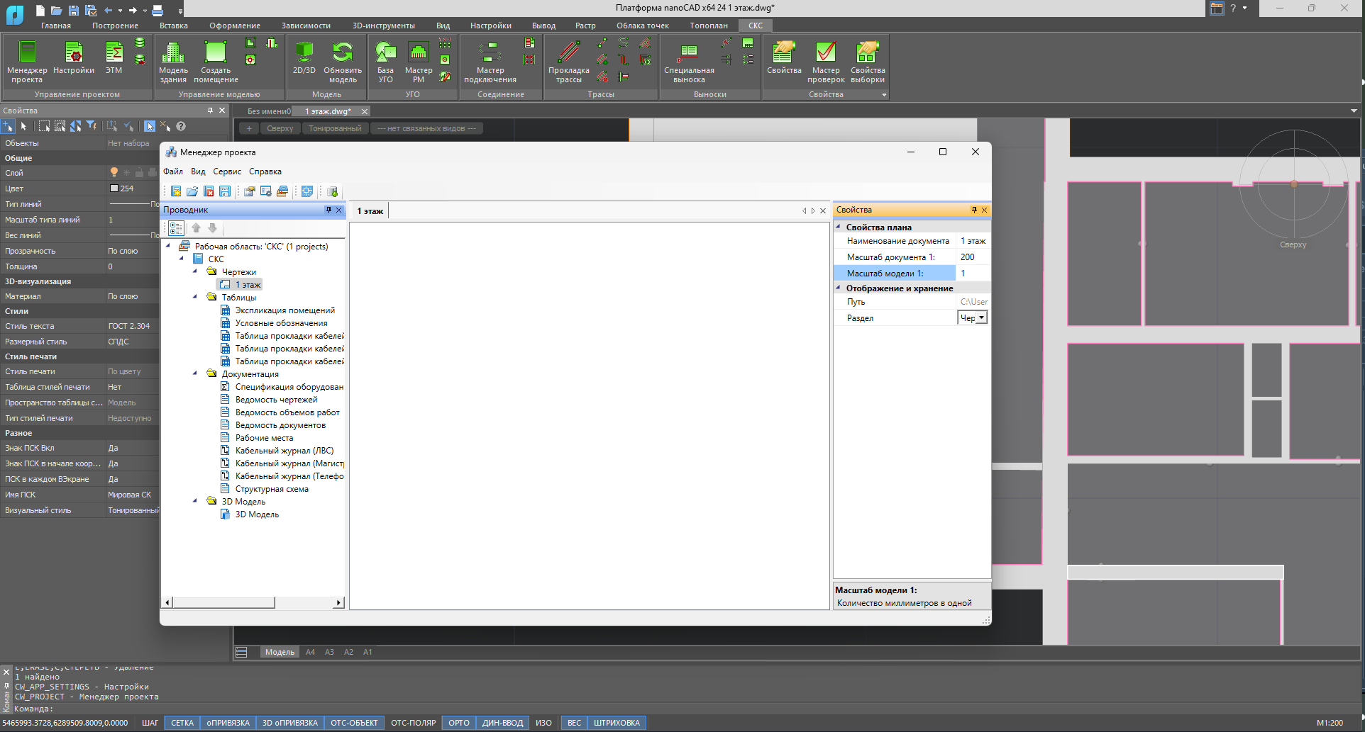 После того как я спроектировал здание в масштабе 1:200 в обычном nanocad, я начал заниматься проектированием структурированных кабельных систем. Когда я начал расставлять рабочие места они были намного больше чем должны быть относительно чертежа здания, эту проблему я исправил с помощью масштаба, но когда поставил шкаф, на 2d чертеже и в 3d визуализации он был очень большим, а команда масштаба не работает, помогите пожалуйста!