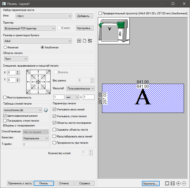 Можете посмотреть приложенный файл dwg - при назначении принтера Встроенный PDF-принтер и альбомного формата (_L) - все равно книжный. *что-то некорректно