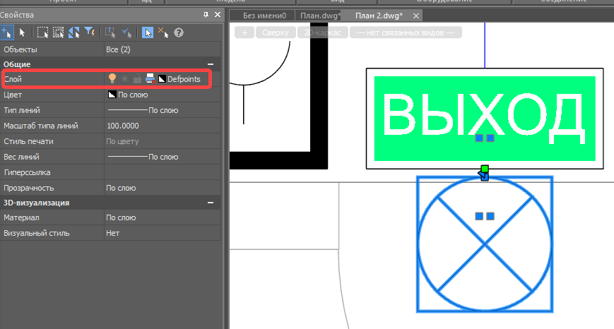 Сегмент трассы и само УГО светового оповещателя перенесите в слой “Defpoints“