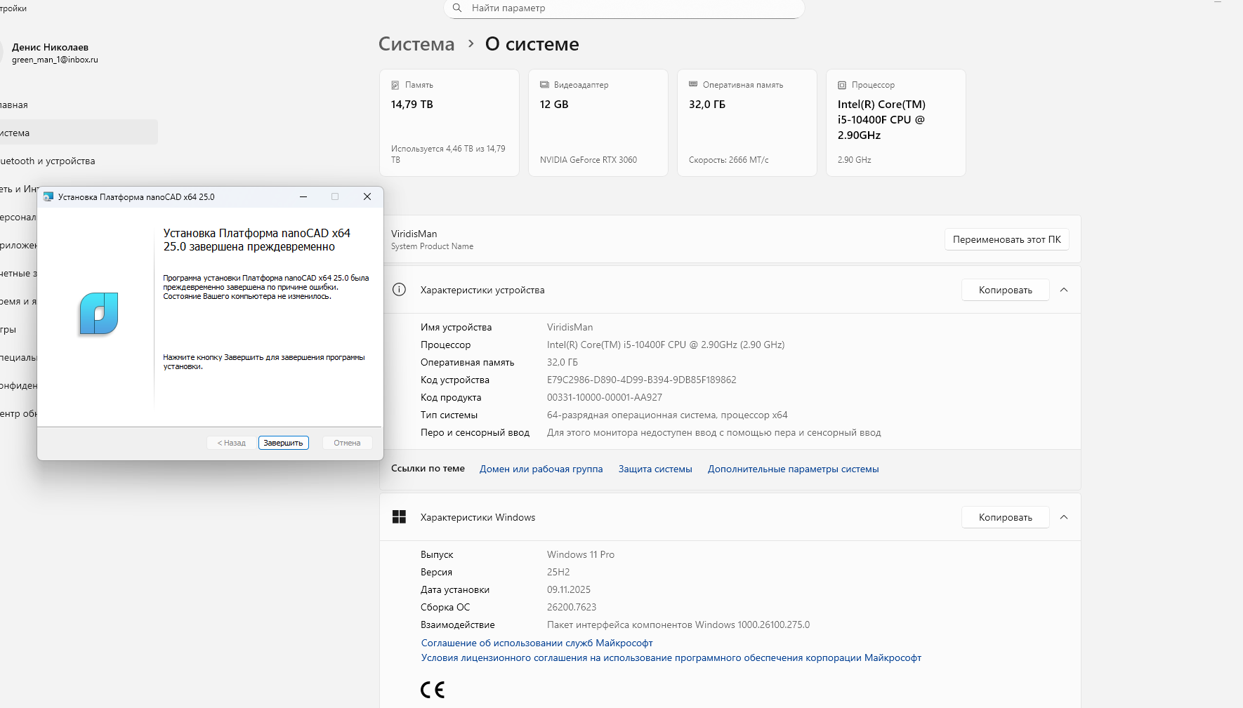 Доходит до финального этапа установки, далее откатывает ее и выдает критическую ошибку.