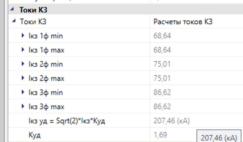 Заполняю данные трансформатора и питающих кабелей и если ток КЗ на стороне ВН не заполнять, то расчет токов КЗ корректный.