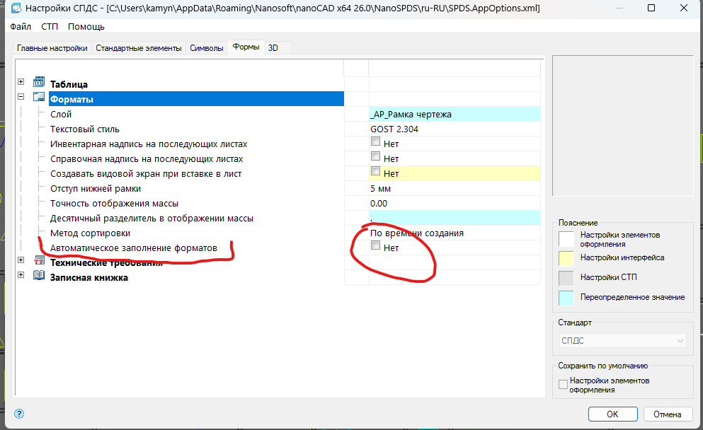 Справиться с проблемой в нанокад 26 удалось сняв галочку с “Автоматическое заполнение форматов”, но это “костыль”
