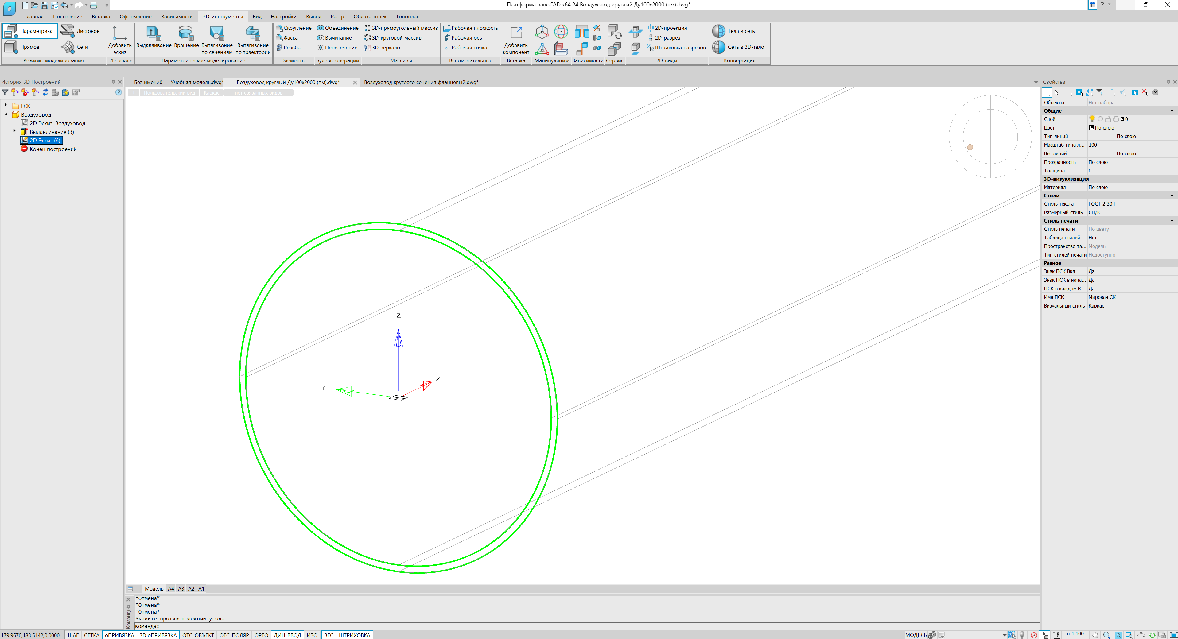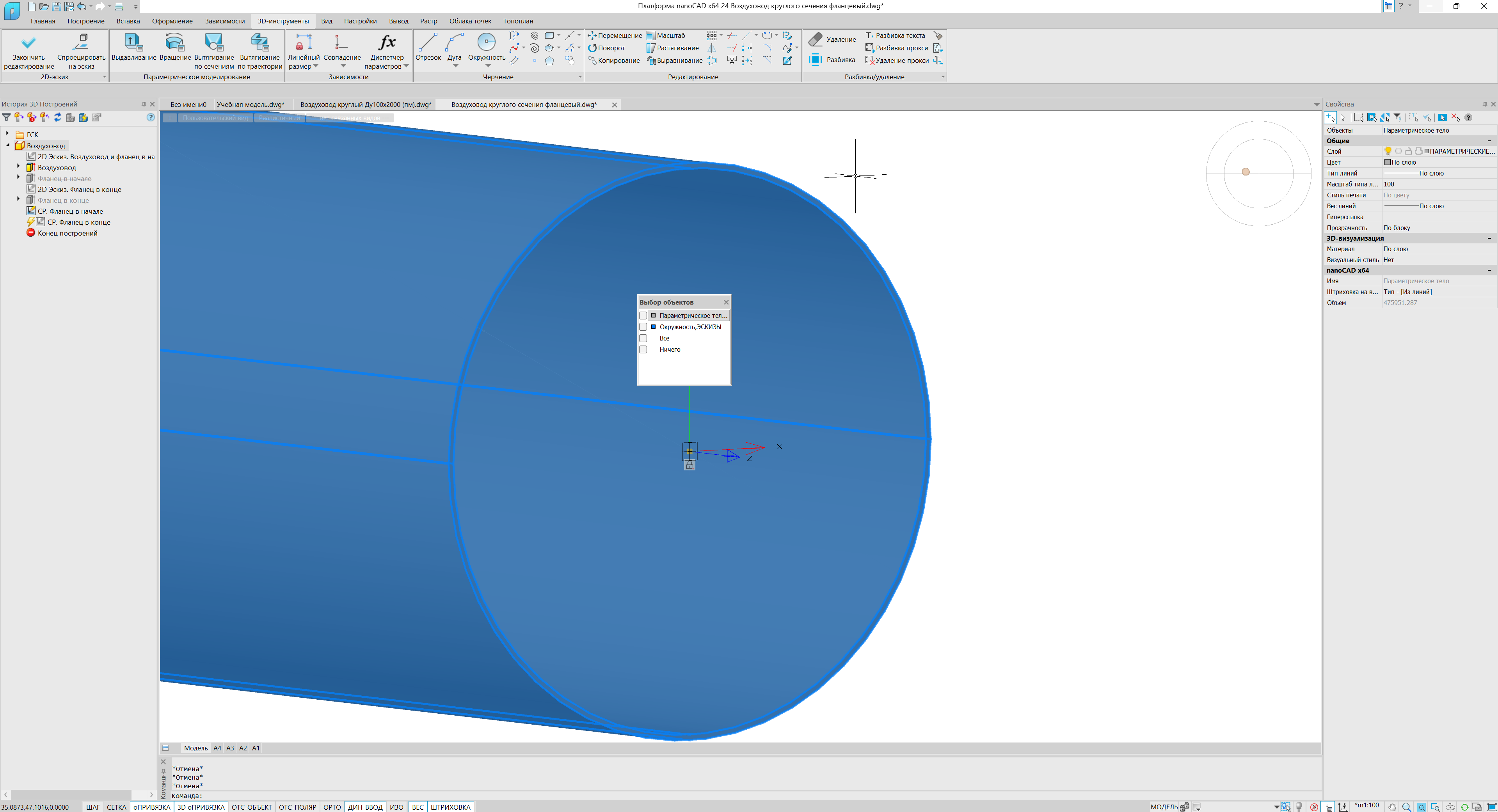 Создаю изделие, импортирую графику из файла в котором труба создана при помощи инструментов параметризации, НЕ возникает запроса “Установка значения для управления отклонением сетки от грани”. Загружается Тело с параметрической графикой.