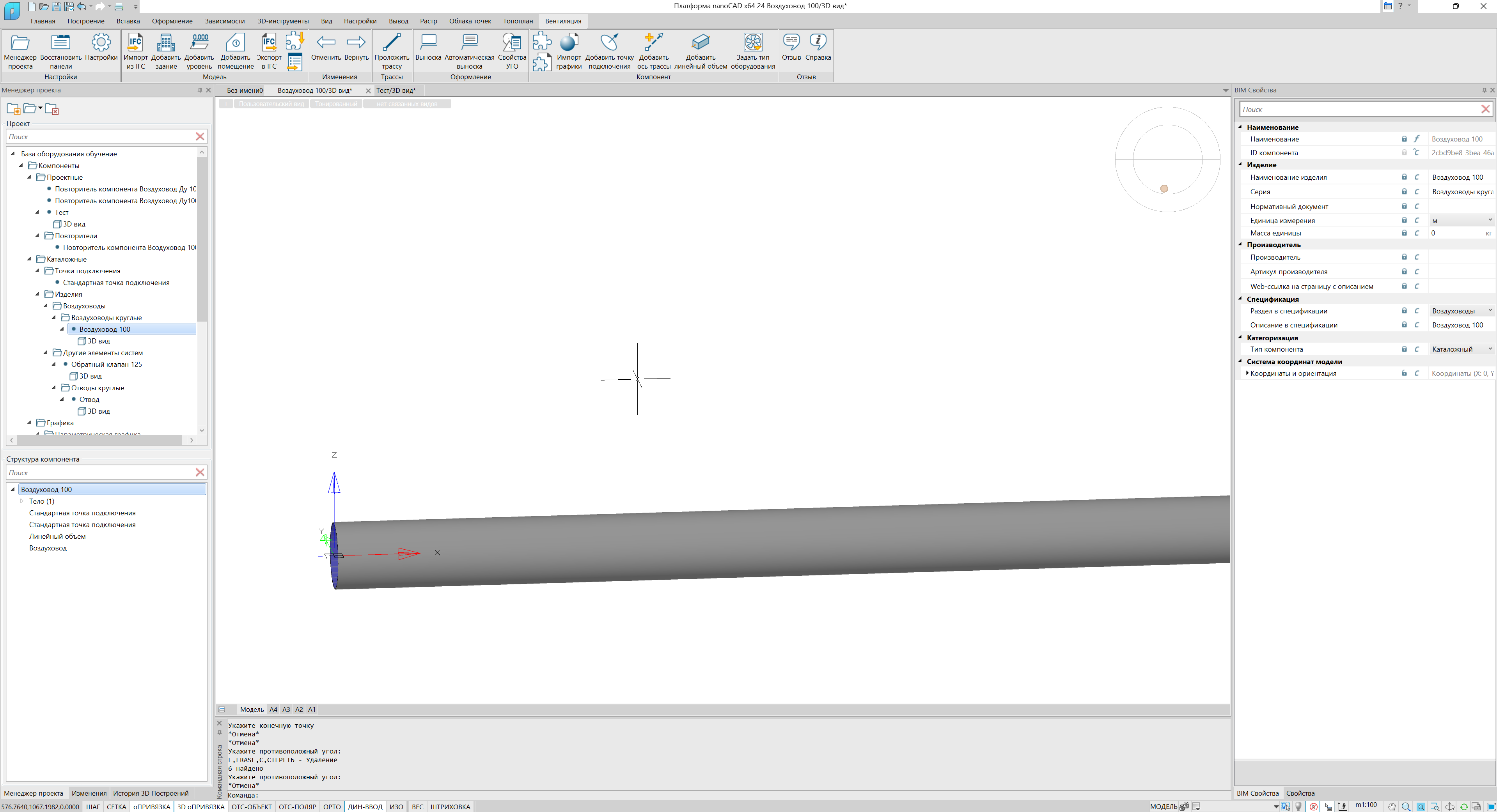 Далее в конце добавления линейного объема (точки подключения созданы и выбраны, тут всё ОК) появляется запрос “Если необходимо, укажите графику для автоматической обрезки”, выбираю загруженную графику, появляется окно уведомления с вопросом “Добавить воздуховод?”, жму Да, но компонент не записывается как воздуховод.