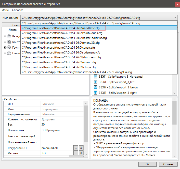 Если вы уже вносили изменения в файл «nCadBase.cfg», выполните следующие действия: