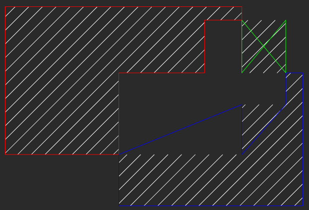 - Попытка восстановления контура у меня привела к созданию полилиний, но с нелепым рисунком (для наглядности 3 полилинии сделал разным цветом)