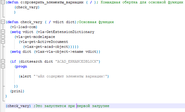 Во вложении лисп. Команда “проверить_элементы_вариации”. Лисп проверяет наличие элементов вариации, если находит выводит соответствующее сообщение.